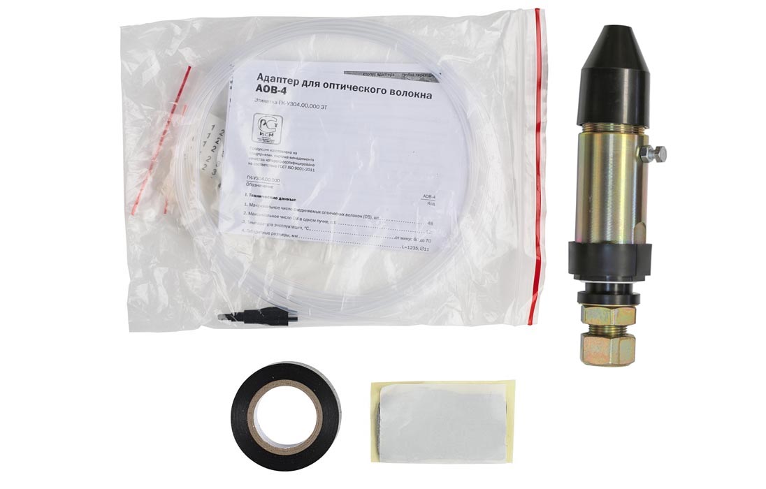Предназначен для ввода оптических кабелей в муфту типа МОПГ-М. Каждый комплект для ввода грозотроса содержит узел ввода, уплотнительную резиновую втулку соответствующей конструкции и адаптеры оптического волокна АОВ-4 в количестве, равном количеству модулей в грозотросе.